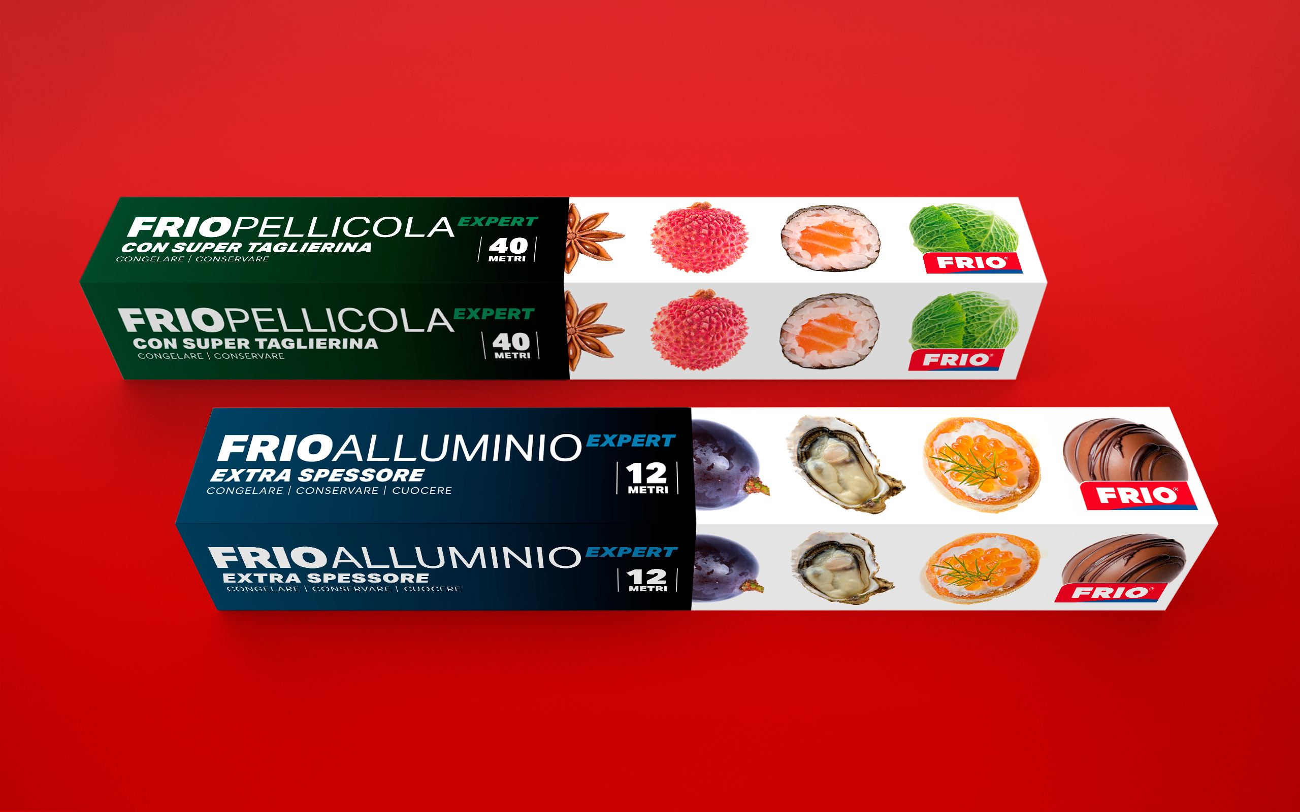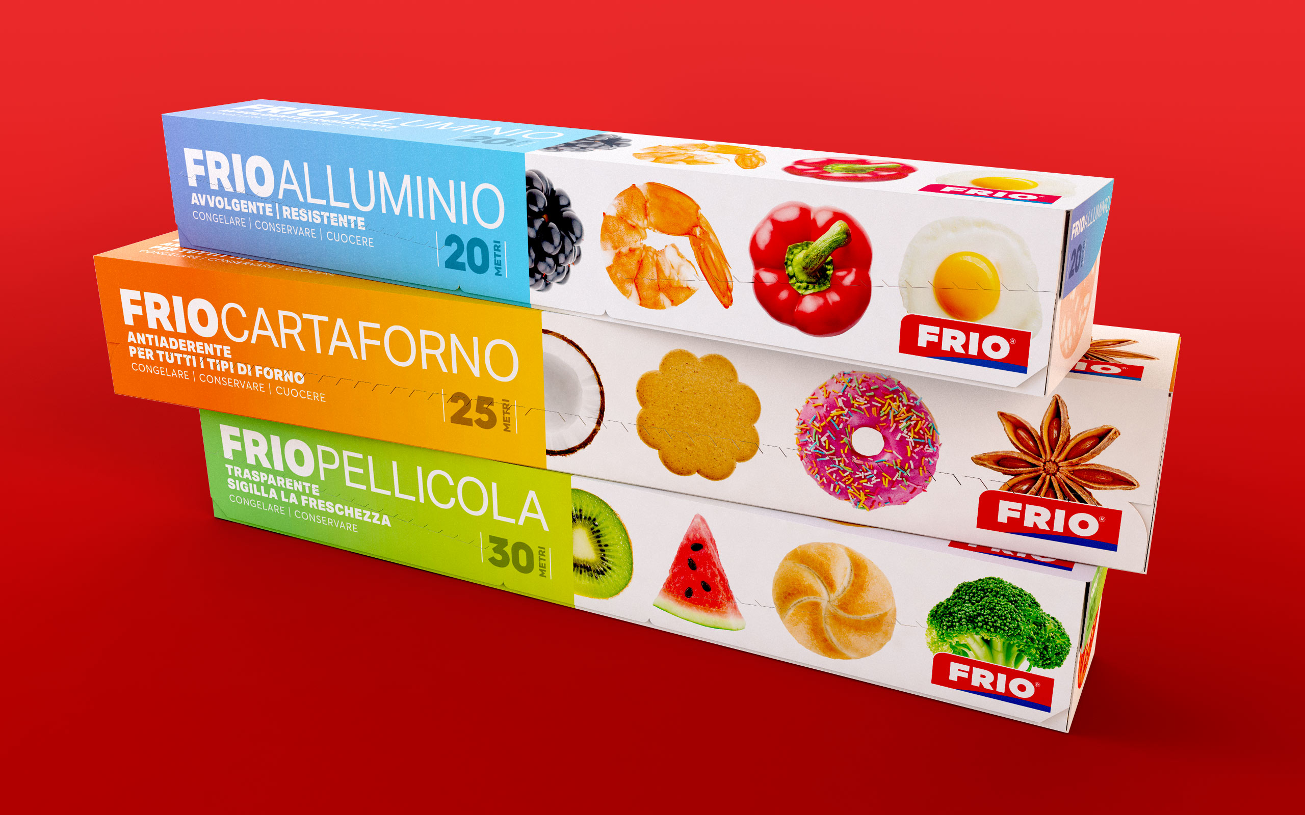 To design Frio‘s packaging, we thought about how much food can be preserved from freezing. The list is different for each of us and for each house. Thus was born a gallery of foods decorating the sides of the packages to give the idea that there are many possibilities. A collection of images that defines Frio’s expressive narrative.